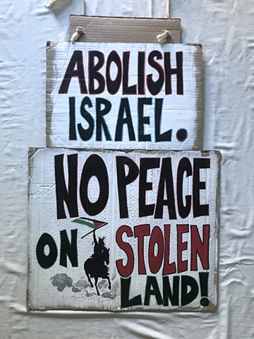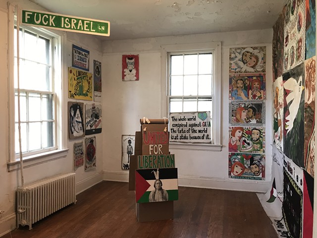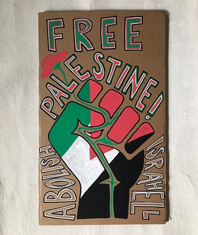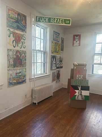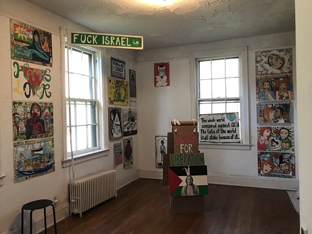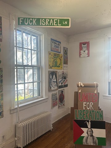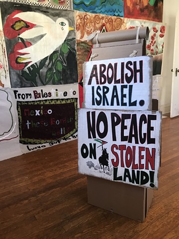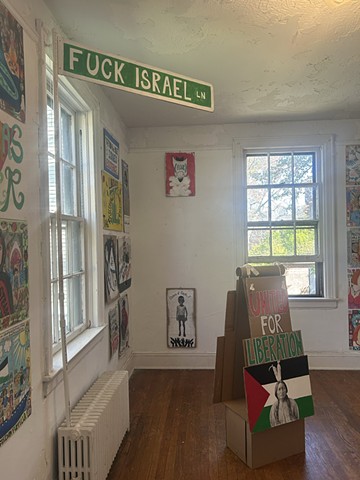Well Mr. Adams. I am here to tell you that I will continue to make and exhibit art that is indeed about hate. Hate for the holocaust, Hate for apartheid. Hate for the Oppressors. Hate for those who choose to starve, slaughter, rape a people and steal their land. No, I am not only talking about America, I am speaking of the so-called Jewish State of Israel. I will continue to make art about uniting for liberation and abolishing the terrorist state that prevents it. Hate does not feel good, therefore I make art, to search for some comprehension behind the demonic acts we witness on our phones, the injustices we see in our streets, that match those done to your own ancestors and the indigenous people before them, Mr. Adams. It helps me uncover truth. It leads me to “hate”. I will continue to speak out and draw conclusions about the oppressors, for you, so you can continue to lick their boots, instead.