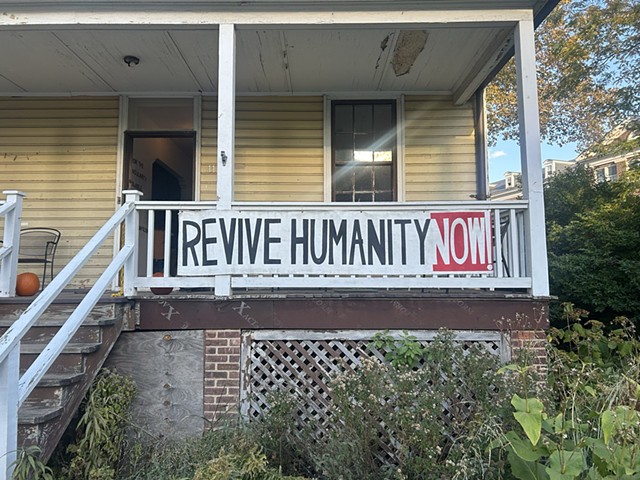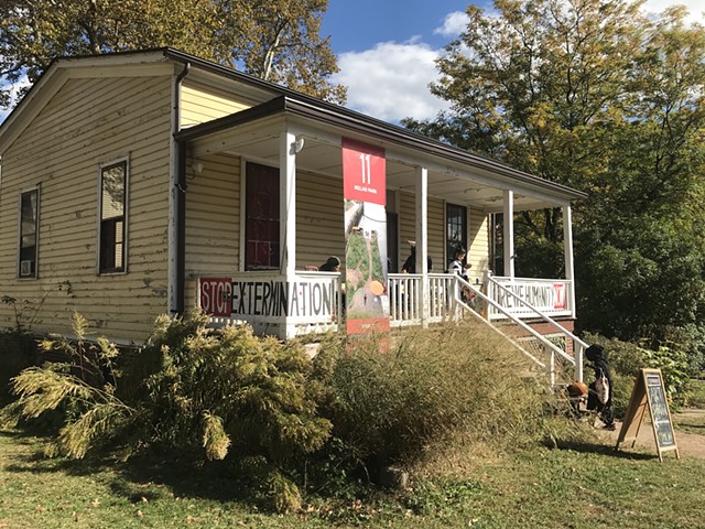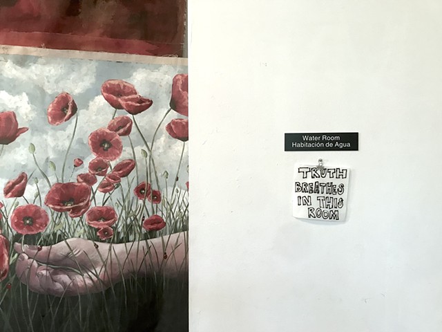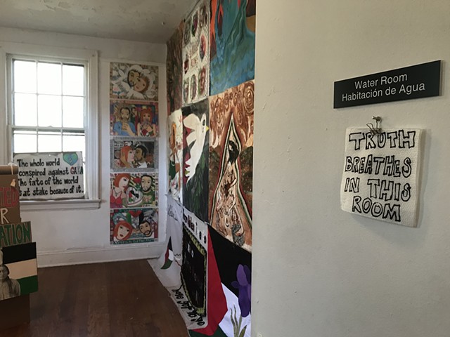 I'd been working on a new sign idea: "Israel has drowned humanity and covered it in concrete". So when thinking about the Water Room, "From the River to the Sea", and water alone, I conveyed my thoughts about how long Palestinians have not controlled their water. "They can't even collect rain water." This was an opportunity to introduce conversations surrounding the occupation in Palestine to an audience otherwise expecting lighthearted Halloween fanfare. We must seize all opportunities.