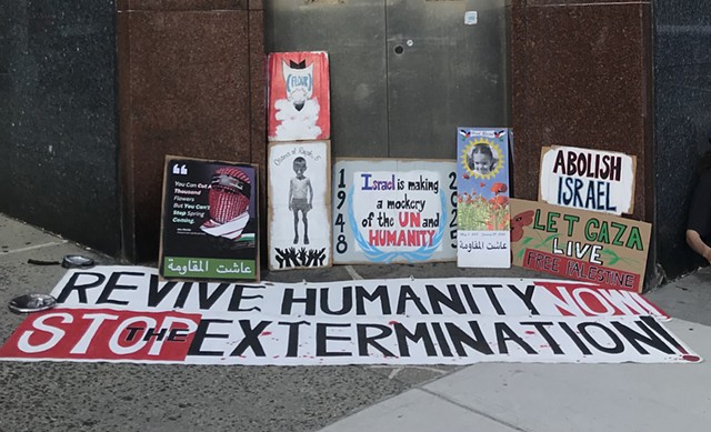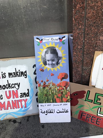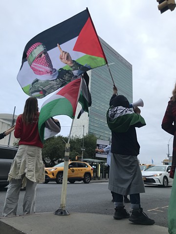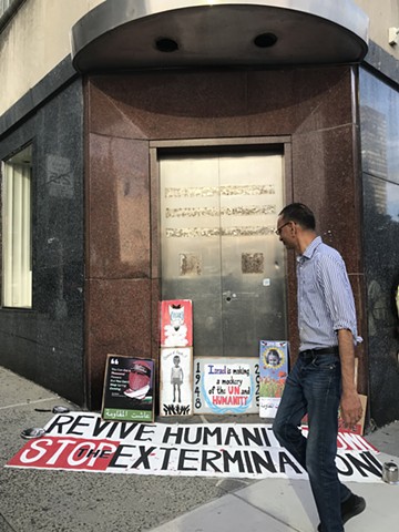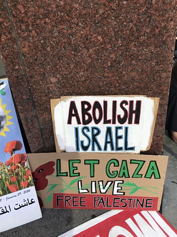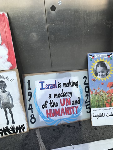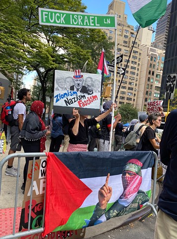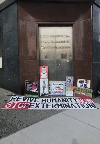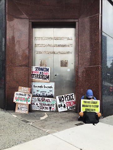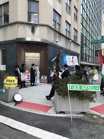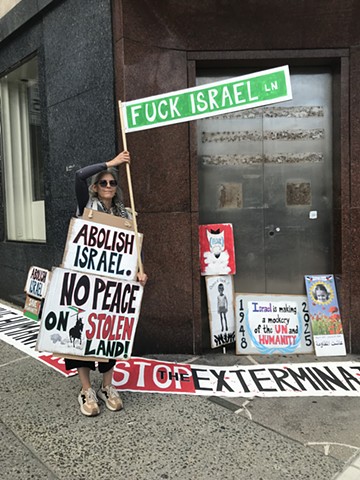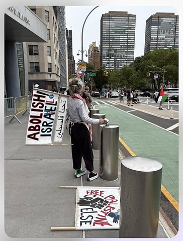 Holding space with noise, rage, disruption, and resistance against the genocidal “mechanisms” that aided in resolutely placing Israel on the map and the passersby who support it.